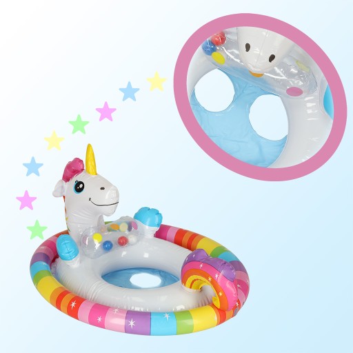 ➡️Wiele dzieci podczas pierwszego kontaktu z wodą może mieć znaczne problemy z opanowaniem umiejętności lub po prostu bać się zanurzenia w wodzie - ale to właśnie w takich sytuacjach dmuchane koło będzie pomocne. Jednorożec będzie towarzyszem wodnych przygód, który z pewnością doda otuchy Twojemu dziecku!