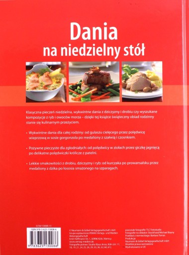 Klasyczna pieczeń niedzielna, wykwintne dania z dziczyzny i drobiu czy wyszukane kompozycje z ryb i owoców morza - dzięki tej książce świąteczny obiad rodzinny stanie się kulinarnym przeżyciem. Wykwintne dania dla całej rodziny: od gulaszu cielęcego przez polędwicę wieprzową w sosie gorgonzola po medaliony z szałwią i czosnkiem. Pożywne pieczyste dla zgłodniałych: od polędwicy w ziołach przez gicze jagnięcą po delikatne polędwiczki królicze z patelni. Lekkie smakowitości z drobiu, dziczyzny i ryb: od kurczaka po prowansalsku przez medaliony z dzika po łososia smażonego na szparagach.