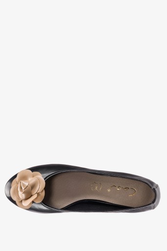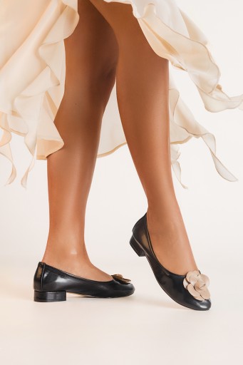 BALERINY DAMSKIE Z OZDOBNYM KWIATEM KOMFORTOWA SKÓRZANA WKŁADKA CZARNE