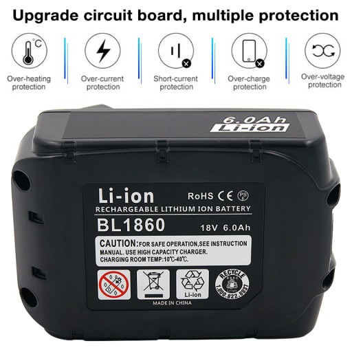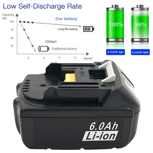 Makita BL1860B to oryginalny, litowo jonowy akumulator o pojemności 6.0 Ah przeznaczony do większości urządzeń marki Makita obsługujących akumulatory 18V serii LXT. Nowoczesne akumulatory litowo jonowe bez efektu pamięci, zwiększona odporność na upadki i uderzenia, możliwość długotrwałego przechowywania. Akumulator posiada wbudowany wskaźnik naładowania.