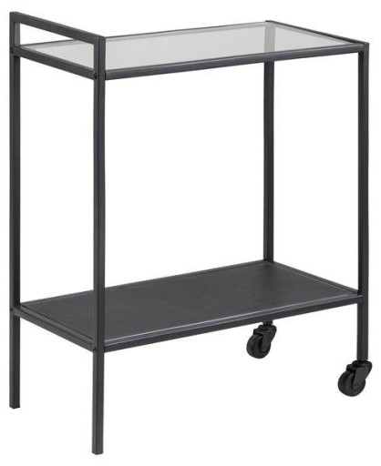 Mebel powstał z myślą o osobach, które lubią produktywnie spędzać czas w kuchni. Daj sobie pomóc i postaw na najwyższą jakość wykonania. Wózek posiada dwie prostokątne półki oraz cztery stabilne nogi – dwie opierają się na kółkach, dlatego możesz go łatwo obracać. Podstawę wykonano z metalu proszkowo malowanego na czarny mat, która idealnie współgra z szklanymi półkami. Wózek ma 60 cm długości oraz 75 cm wysokości.