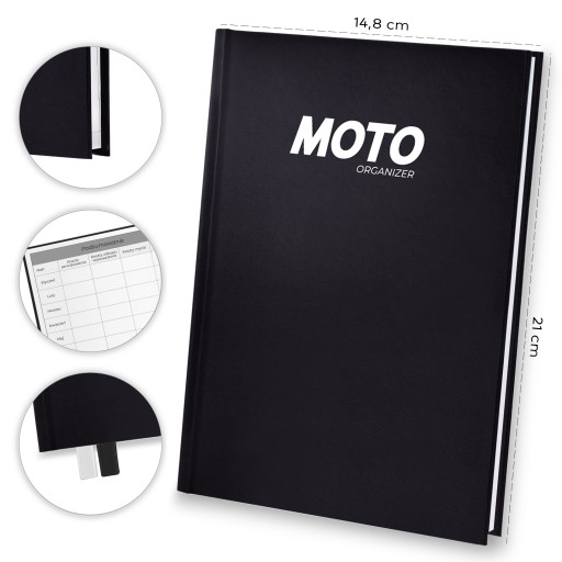 Moto Organizer posiada bardzo dużo miejsca na wpisanie wszystkich informacji wraz ze szczegółami. Ponadto został zaprojektowany tak, aby był: