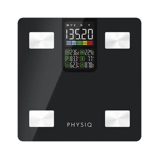 WAGA INTELIGENTNA PHYSIQ - KOLOROWY EKRAN, NAJDOKŁADNIEJSZE POMIARY, BLUETOOTH, SZKŁO HARTOWANE, ANALIZA 13 PARAMETRÓW, MAKS. 226 KG, APLIKACJA MOBILNA, KOMPATYBILNOŚĆ Z ANDROID/IOS