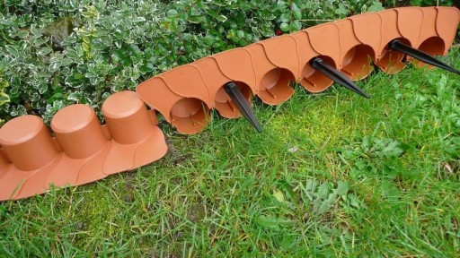 - Wykonane z brązowego tworzywa łączone za pomocą systemowych zapięć oraz wspornikiem który wbijamy do ziemi.