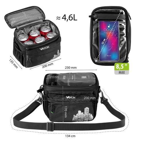 ✔️Funkcjonalność i styl torba posiada wiele praktycznych rozwiązań: duża komorę chłodniczą o pojemności do 4,6l, przezroczyste etui na telefon do 8,5cala, pokrowiec przeciwdeszczowy, wygodne przegródki zewnętrzne, pasek na ramię, uchwyt na bidon.