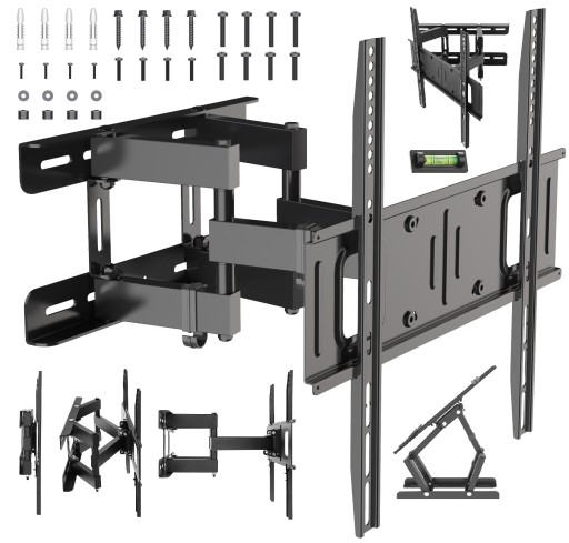 - Opakowanie zawiera pełen zestaw akcesoriów do montażu (w tym kołki, wkręty, podkładki potrzebne do przykręcenia uchwytu do ściany oraz śruby i podkładki potrzebne do przykręcenia telewizora do uchwytu)