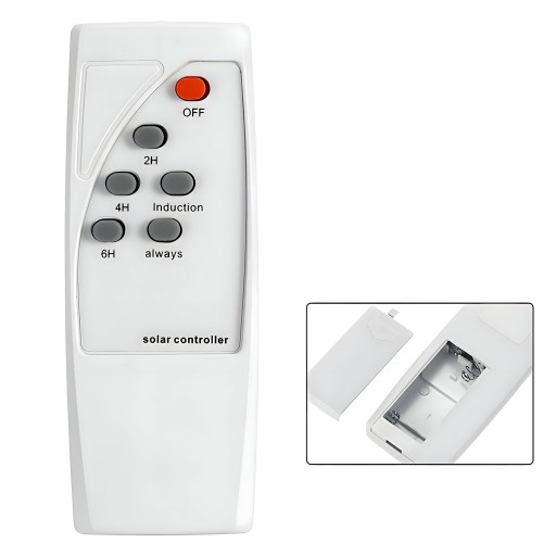 ⚡Przyciskami na pilocie możemy wybrać czas działania lampy po zmierzchu: 2, 4, lub 6 godzin.