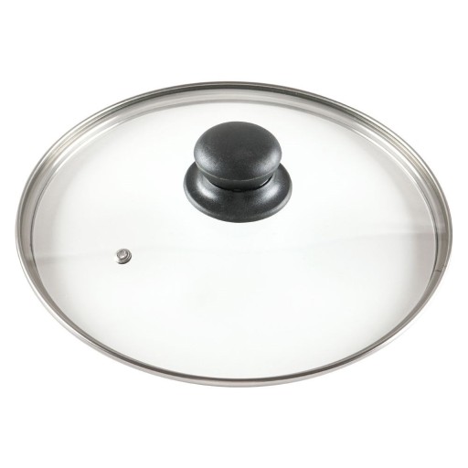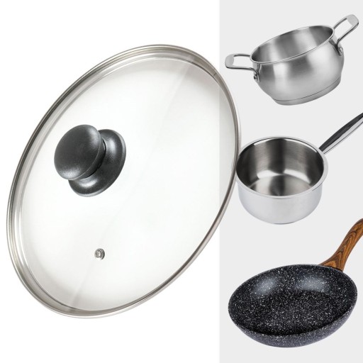- UNIWERSALNA - Szklana pokrywa ze stalową obręczą i uchwytem. Pokrywka ma średnicę 24 cm i wysokość z uchwytem 7,5 cm. Można ją użyć do pokrycia każdego rodzaju garnków, patelni i rondli w tym rozmiarze.