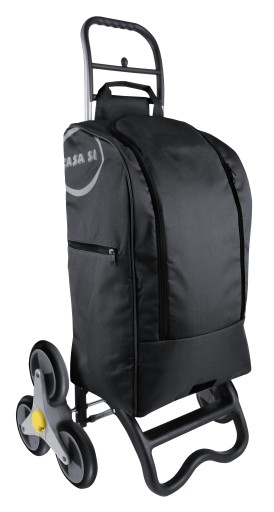 Lekki wózek Buddy z ergonomiczną rączką i systemem TRZECH KÓŁ firmy CasaSi, Będzie on pomocny przy transportowaniu zakupów lub innego bagażu. Model ten posiada trzy koła o średnicy 15 cm z lekką piankową oponą i plastikową felgą oraz składaną podpórkę. Dziki takiemu rozwiązaniu doskonale dopasowuje się do powierzchni po której jedzie. Bez większego wysiłku wciągną go Państwo po schodach lub na wysoki krawężnik. Można na niego załadować duże i ciężkie zakupy bez obawy o bóle rąk i kręgosłupa, gdyż jego pojemność to 40 l, a maksymalne obciążenie wynosi 30 kg. Torba została zrobiona z odpornego na wodę materiału, dzięki czemu zakupy pozostaną suche np. podczas deszczu. Dodatkowo wnętrze torby jest izolowane termicznie przez co długo utrzymuje niską temperaturę w środku. Gdy torba się zabrudzi można ją prać w pralce. Przód torby rozpina się przez co jest łatwy dostęp do zakupów na samym dnie. Wózek posiada także małe boczne kieszonki zapinane na suwa. Chciałbym zaznaczyć że powoli wózki na zakup stają się ulubionym gadżetem ludzi młody. Zwłaszcza że stylistyka włoskiego producenta jest bardzo uniwersalna