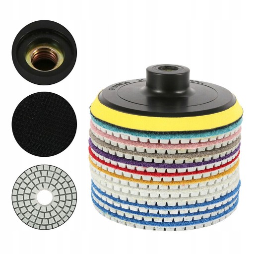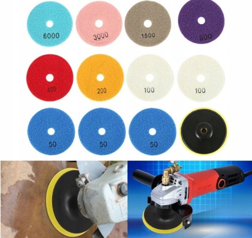 - Istnieje 11szt 4-calowe diamentowe pady polerskie: Grit 50#x3, 100#x2, 200#, 400#, 800#, 1500#, 3000#, 6000#.