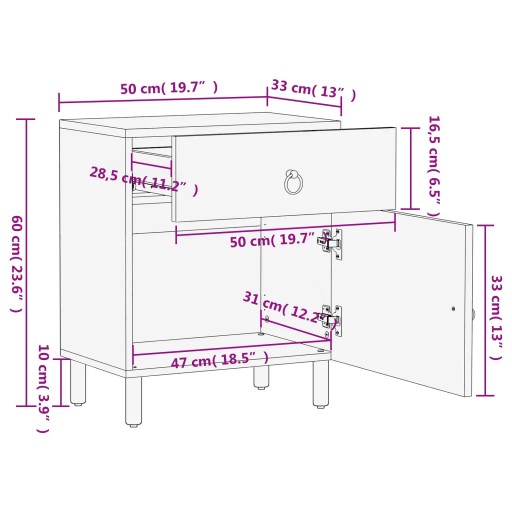 Szafka nocna, 50x33x60 cm, lite drewno mango