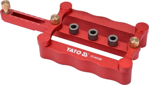 Uniwersalny przyrząd do wyznaczania miejsc wykonywania otworów pod kołki do łączenia drewnianych elementów np. płyt meblowych. Wskazuje środek krawędzi płyt o szerokości od 17 - do 50 mm . Konstrukcja szablonu pozwala na wykonywanie otworów również na płaszczyźnie nie tylko na krawędziach. Wykonany ze stopu na bazie aluminium ,tuleje ustalające o średnicach 6, 8, 10 mm wkręcane w korpus wykonane są z utwardzanej stali. Przyrząd prosty ,skuteczny i precyzyjny do zastosowań profesjonalnych i dla wymagających majsterkowiczów.