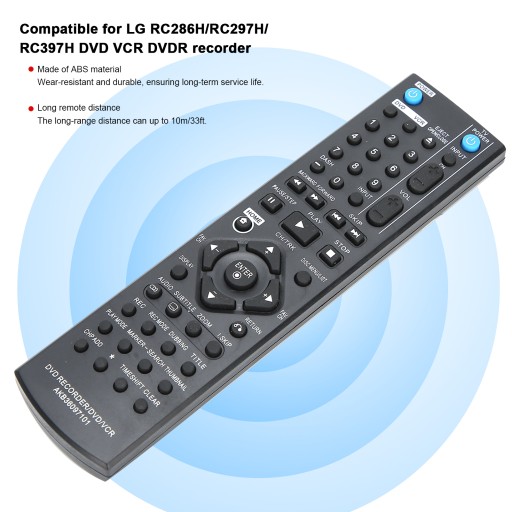 Funkcja:1. Kompatybilny z nagrywarką LG RC286H/RC297H/RC397H DVD VCR DVDR, nowi użytkownicy mogą uczyć się szybko i umiejętnie.