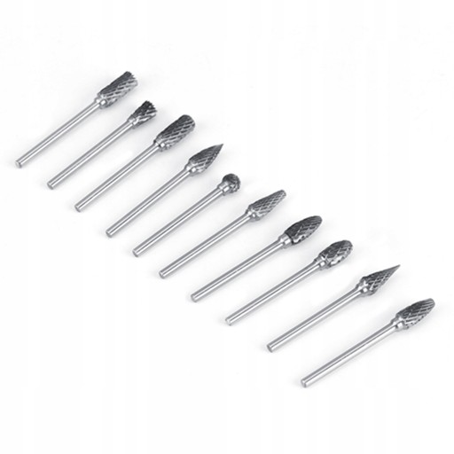 Jest to zestaw 10 sztuk wierteł obrotowych w różnych kształtach do wielu celów i może być używany do cięcia żeliwa, staliwa, stali węglowej, stali stopowej, stali nierdzewnej, miedzi, aluminium, marmuru, jadeitu, kości itp.