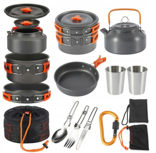 Garnek kempingowy ma pokrywkę, aby uniknąć utraty ciepła. Pokrywka może być również używana jako patelnia, która jest wszechstronna. Krawędzie są zaokrąglone i łatwe do czyszczenia. Wylot wody jest przeznaczony do łatwego nalewania żywności.