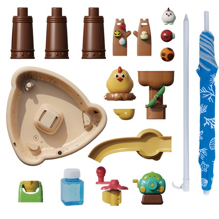 Zestaw zawiera również zjeżdżalnię, po której zwierzątka z zestawu mogą zjeżdżać wesoło i szybko. To nie tylko zabawa wodą, ale także zabawa z ruchem, zdobywanie nowych umiejętności i kształtowanie wyobraźni.