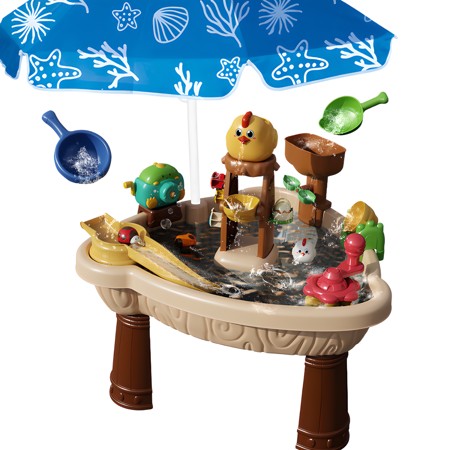Stolik wodny ma wiele innych atrakcji, takich jak maszyna do baniek mydlanych. Teraz dziecko może tworzyć magiczne bańki, które unoszą się w powietrzu, przyciągając wzrok i wywołując uśmiech na twarzy malucha.