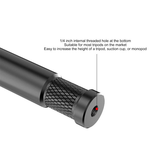 2. Dolny otwór z gwintem wewnętrznym 1/4 cala: Przedłużacz drążka do selfie ma na dole gwintowany otwór o średnicy 1/4 cala, który jest odpowiedni dla większości statywów dostępnych na rynku, dzięki czemu można łatwo zwiększyć wysokość statywów, przyssać kubki lub monopody.
