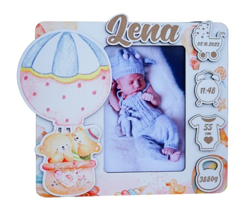 Piękna kolorowa ramka na zdjęcie spełniająca funkcję metryczki urodzinowej. Duża - aż 22x24 cm