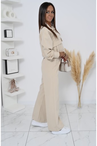 Krótka marynarka i szerokie spodnie z wysokim stanem