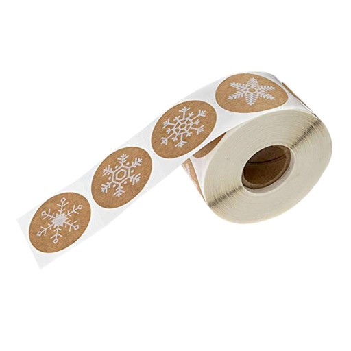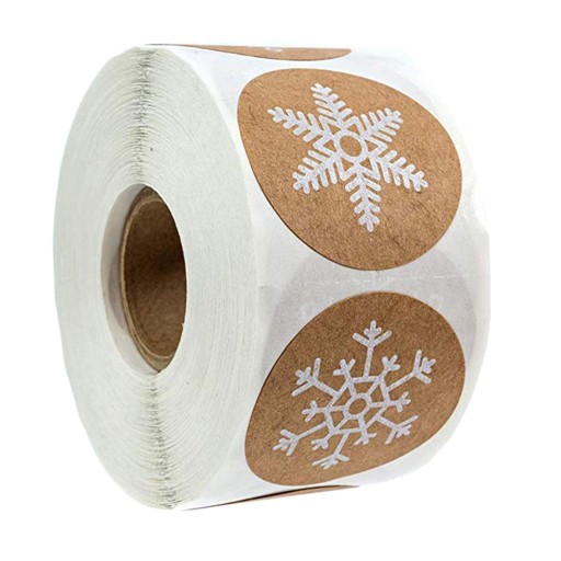 4x1 rolka 500 szt. Świąteczna naklejka Wiash Świąteczna naklejka na prezenty w kształcie płatka śniegu