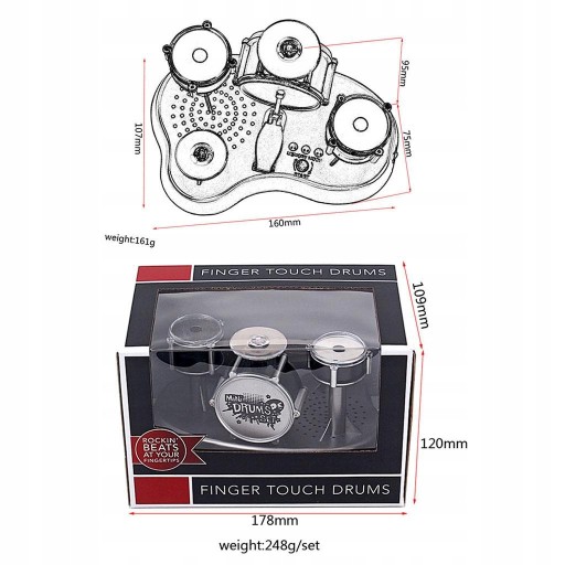 Opis: Bęben na palec jest naprawdę fajny do grania, obowiązkowy przedmiot dla dzieci i prezentów Idealny projekt do samodzielnego demonstrowania muzyki perkusyjnej za pomocą panelu dotykowego Zawiera panele dotykowe dla wszystkich komponentów, w tym basów, talerzy i 3 bębnów bocznych Wystarczy dotknąć panelu opuszkami palców, a muzyka zostanie udźwiękowiona Wykonuje funkcję Demo / Record / Playback Gra się opuszkami palców nie wymaga pałki perkusyjnej, uderz w bębny, a każdy się zaświeci