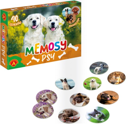 Tabliczki rozkładamy na stole rewersem do góry, a potem odkrywamy na chwilę jedna po drugiej i próbujemy z pamięci wskazać miejsce pasującego obrazka. Gra jest skierowana jednocześnie do dzieci i dorosłych. To świetny trening pamięci i spostrzegawczości. Zapewnia dużo dobrej zabawy i emocji w otoczeniu przepięknych zdjęć psów.