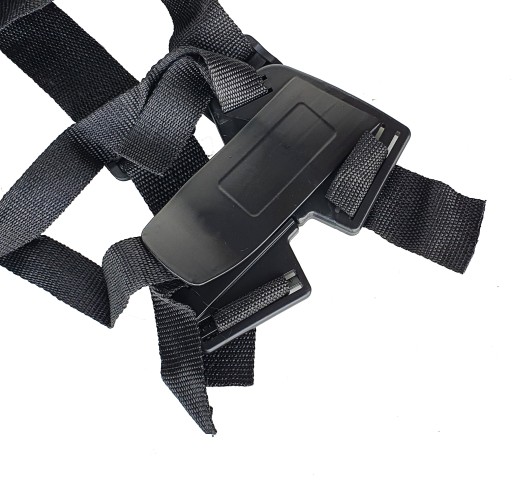 - Szelki zostały wyposażone w zatrzask do awaryjnego odpięcia kosy za pomocą jednej ręki.