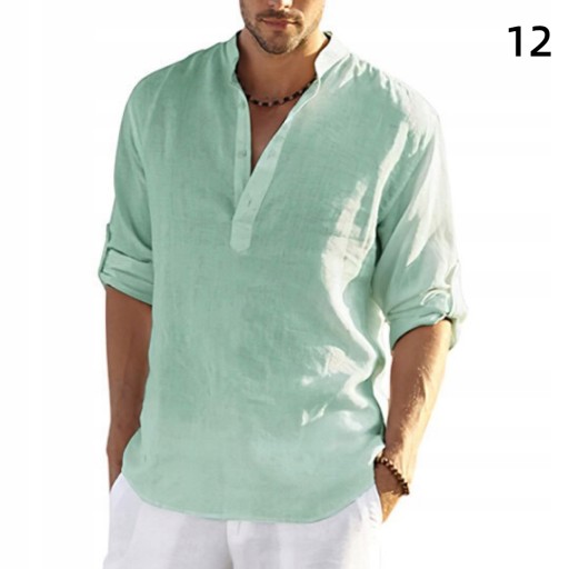 Męska Bluzki Lniana Luźna Moda Koszula Oversize Kolor wielokolorowy