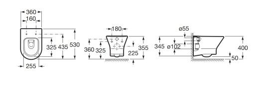 - Miska NEXO ROCA bezkołnierzowa przystosowana do spłukiwania 4/2, 4,5/3 oraz 6/3 l.