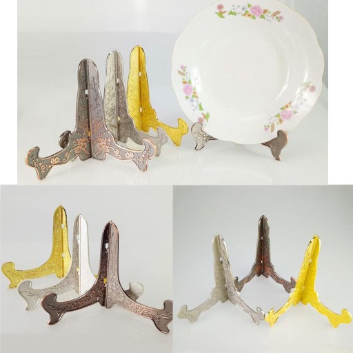Metalowy składany talerz miska naczynie obrazek uchwyt na herbatę sztaluga 10cm_złoty