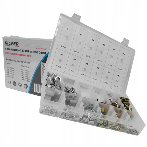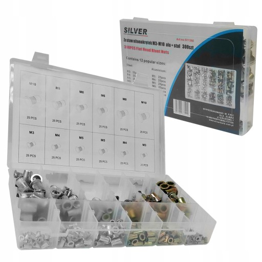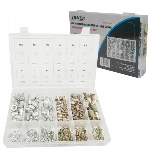 НАБОР СТАЛЬНЫХ И АЛЮМИНИЕВЫХ ЗАКЛЕПОЧНЫХ ГАЙОК M3-M10 300 ШТ.