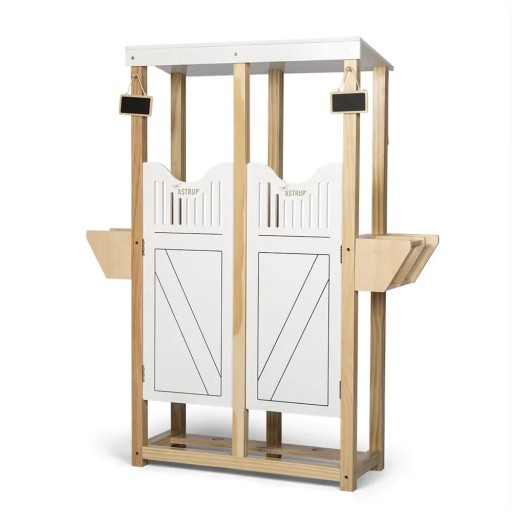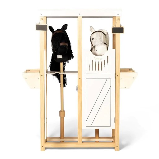 W zestawie ze stajnią znajdują się również 2 przedłużacze, które pozwalają na dostosowanie przestrzeni dla koni hobbystycznych, oraz 2 małe tablice, umożliwiające personalizację wpisując imiona dla Hobby Horse. Tablice można zawiesić na małych drewnianych gałkach umieszczonych nad drzwiami stajni. Dodatkowo, obok drzwi stajni zamontowane są dodatkowe gałki, na których można powiesić różne akcesoria dla koni, takie jak ogłowie dla Hobby Horse, zapewniając w ten sposób porządek i łatwy dostęp do wszystkich niezbędnych elementów.