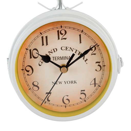 Te niesamowite, wyglądające na antyczne zegary ścienne stanowią wykończenie wystroju Twojego domu lub biura. Wyglądają wspaniale nad kominkiem, pianinem lub w dowolnym pomieszczeniu i pasują do większości stylów dekoracji.. DWUSTRONNY ZEGAR ŚCIENNY DWORCOWY RETRO BIAŁY