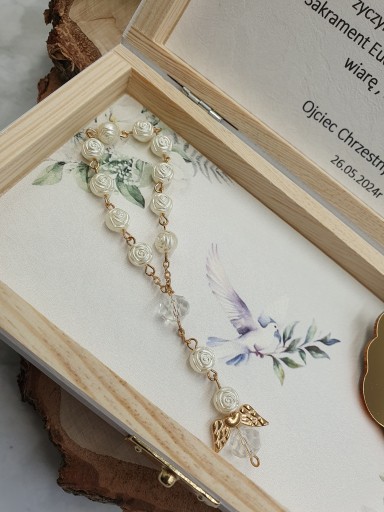 Сувенир ко Святому Причастию - ПОДАРОК Белая коробочка. Набор четок и ангела