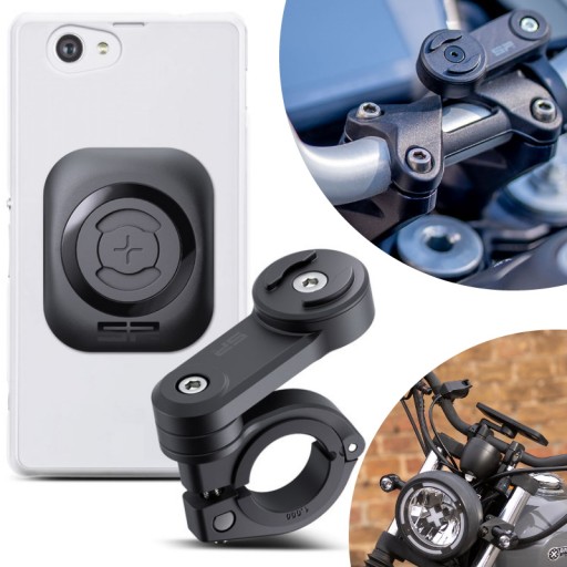 Uchwyt pasuje do każdego elementu posiadającego uniwersalne mocowanie SPC . Możesz wpiąć urządzenie bezpośrednio (poprzez przytwierdzony do telefonu uniwersalny adapter) lub skorzystać z etui SP Connect.