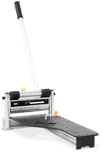 Gilotyna do paneli marki MSW pozwala bez wysiłku skrócić deski podłogowe bez odprysków. Obsługa maszyny odbywa się ręcznie, bez użycia prądu. Dodatkowo posiada możliwość ustawienia kąta cięcia. Długa dźwignia zapewnia idealne przenoszenie siły. Pozwala precyzyjnie ciąć panele przy niewielkim nacisku. Ułatwia także cięcie desek o grubości do 16 mm. Szerokość cięcia wynosi 230 mm. Urządzenie nadaje się do obróbki płyt MDF, VCT, PCV, płytek dywanowych, gumowych, winylowych, skóry oraz winylowych i cementowo-wiórowych paneli elewacyjnych. Gilotyna generuje mniej kurzu niż przecinarka elektryczna a krawędzie po cięciu są zawsze idealne.