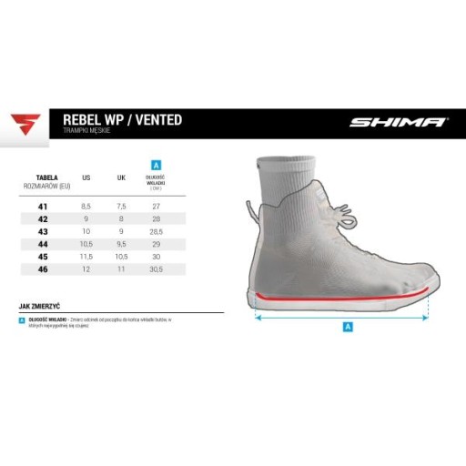 Rozmiary (długość wkładki): 41 (27 cm), 42 (27,8 cm), 43 (28,5 cm), 44 (29 cm), 45 (30 cm), 46 (30,5 cm), 47(), 48().