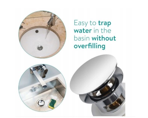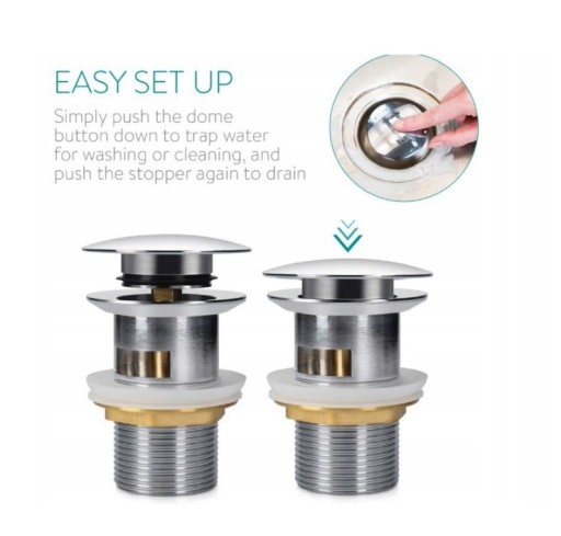 OTWARTY, ZAMKNIĘTY: Dzięki zaworowi wyskakującemu możesz łatwo wymienić stare, zużyte zawory zlewozmywakowe na nowy. Dzięki sprężynie dociskowej odpływ można szczelnie zamknąć i otworzyć za naciśnięciem jednego przycisku.