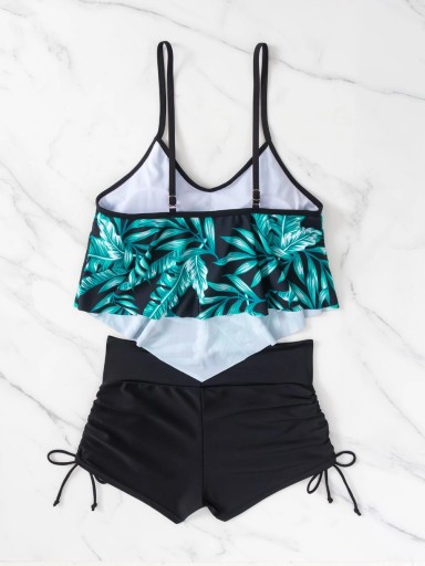 STRÓJ KĄPIELOWY DWUCZĘŚCIOWY WYSZCZUPLAJĄCY LIŚCIE WIĄZANIE BOHO WYSOKI STAN SPODENKI
