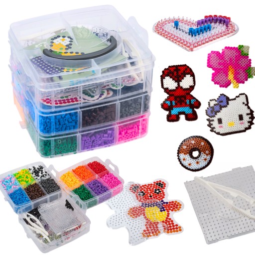 ✅ ZUPEŁNY ZESTAW XXL - W zestawie znajdziesz wszystko czego potrzebujesz, aby stworzyć piękne obrazki. Kolorowe koraliki, szablony, foremki, łączniki oraz pęsety!