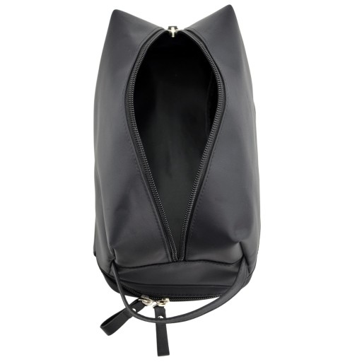 Kosmetyczka posiada zamek po obwodzie który poszerza pojemność niemal o połowę. Dodatkowo kosmetyczkę można zawiesić na wygodnym haczyku np. na grzejniku.