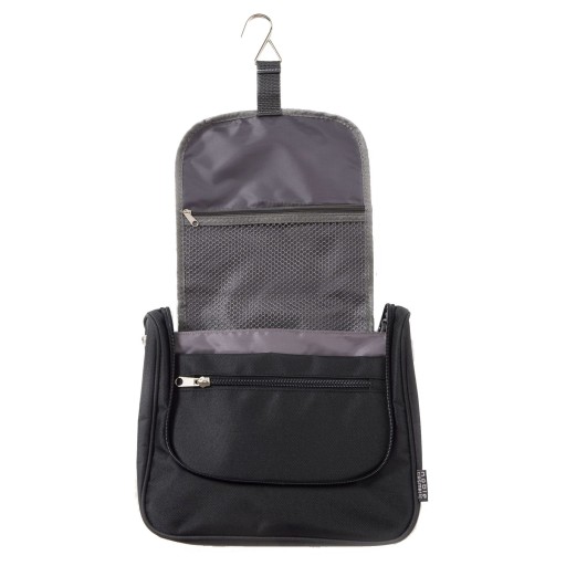 Kosmetyczka posiada bardzo funkcjonalny haczyk do powieszenia w łazience na wieszaku lub grzejniku. Haczyk jest schowany tak aby nie przeszkadzał gdy go nie używasz.