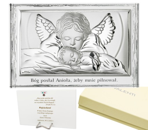 ✅ Srebrny obrazek z wizerunkiem Anioła Stróża to wyjątkowy prezent, idealny na różne okazje związane z życiem dziecka.