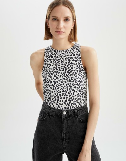 БЕЛЫЙ ЧЕРНЫЙ БОДИ КЛАССИЧЕСКОГО КРОЯ С РАСТЯЖЕННЫМ УЗОРОМ DEFACTO XXL LATCH