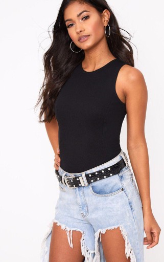 ЧЕРНЫЙ РЕБРИСТЫЙ ТЕЛО PRETTYLITTLETHING 38