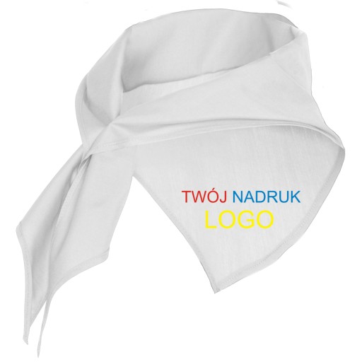 Trójkątna chusta wykonana z poliestru przypominająca w dotyku bawełnę.