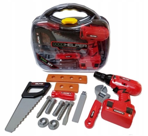 Zestaw narzędzi małego majsterkowicza w walizce, a w niej 14 elementów, z których możesz stworzyć swój niezbędnik. Między innymi śrubokręt z wymiennymi końcówkami, klucz hydrauliczny, piła ręczna oraz wiertarka na baterie 2 x AA (brak w zestawie).