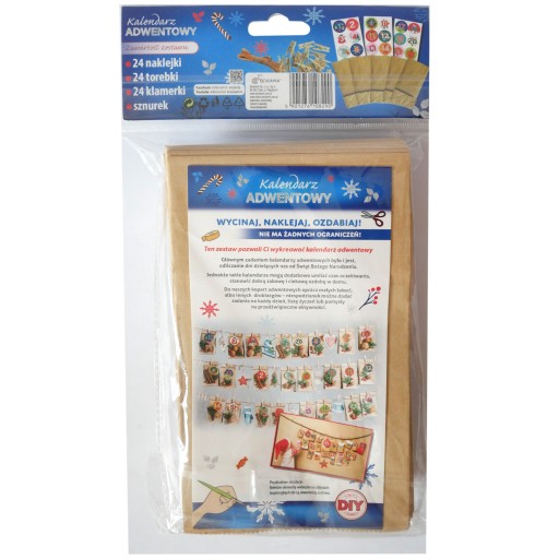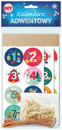 Ten zestaw pozwoli Ci wykreować kalendarz adwentowy, zawiera: torebki kraft, spinacze, sznurek oraz naklejki. Wycinaj, naklejaj, ozdabiaj.