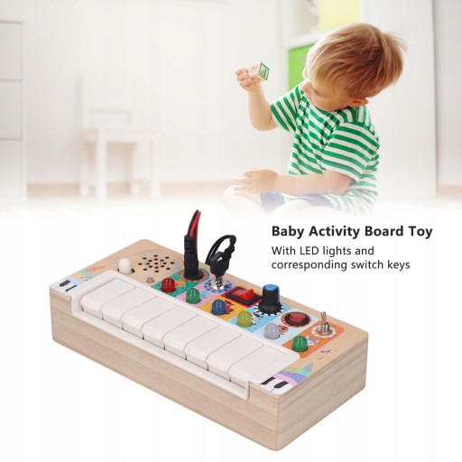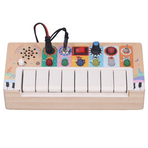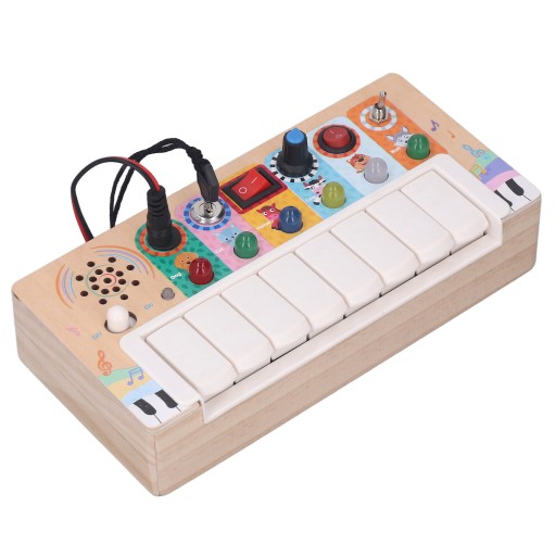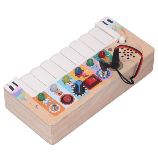 Funkcja:1. Włącznik światła LED: Ta elektroniczna tablica jest wyposażona w diody LED, które emitują delikatne i jasne kolory. Dzieci mogą włączyć odpowiednie światła LED, naciskając klawisz, zapewniając im dobre wrażenia wizualne.